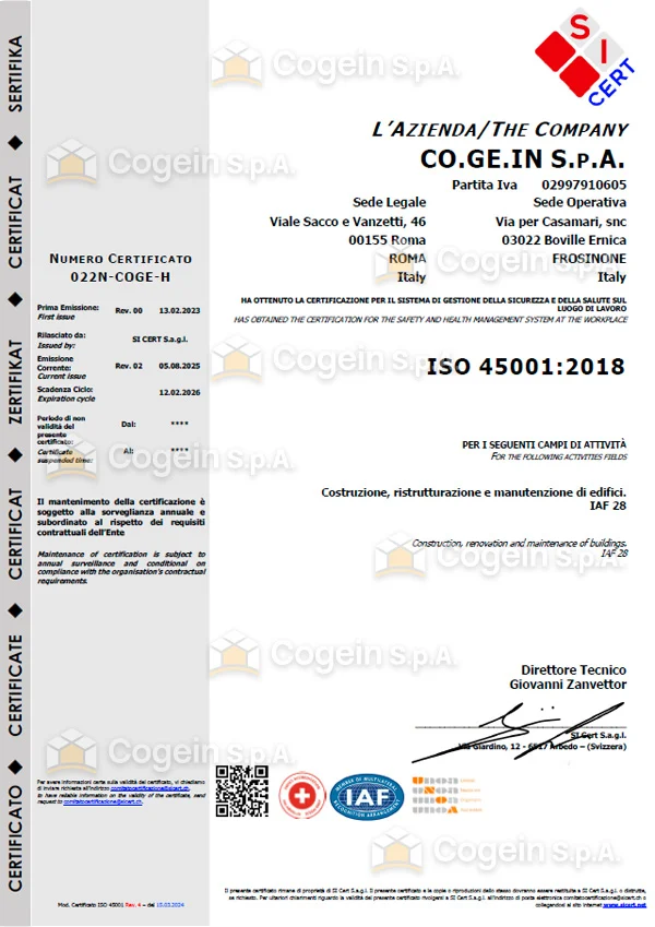 L’azienda ha conseguito importanti certificazioni che attestano la qualità, sicurezza e sostenibilità dei suoi servizi. Questi riconoscimenti confermano l’impegno costante verso standard elevati e il rispetto delle normative del settore edilizio.
